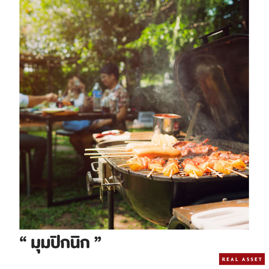 เที่ยงวันไหนอากาศดี ๆ ก็ลองเปลี่ยนบรรยากาศทานอาหารกลางวัน ด้วยการมาปิกนิกที่โซนแปลงมุมของบ้าน ลองจัดบรรยากาศให้เป็นสวนสวยแสนร่มรื่นพร้อมปิกนิกกับคนในครอบครัวก็ดูดีมากเลยค่ะ