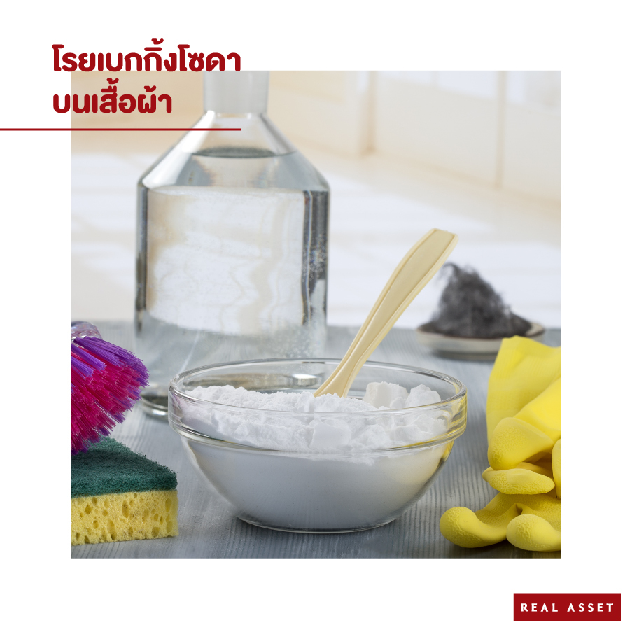 2. โรยเบกกิ้งโซดาบนเสื้อผ้า