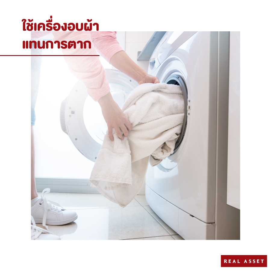 5. ใช้เครื่องอบผ้าในการอบผ้าให้แห้ง