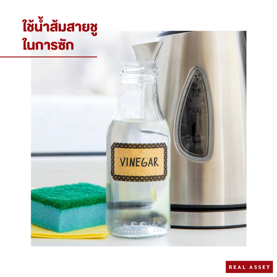 1. เติมน้ำส้มสายชูลงไปผสมในการซัก