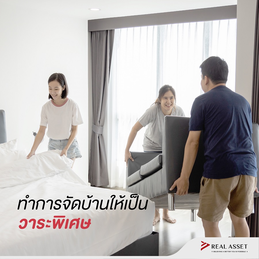 การจัดบ้านเป็นกิจกรรมแห่ง ‘Ever Smile’ ช่วยลดความเครียด เพิ่มพลังบวก และ ‘Ever Love’ ที่ส่งเสริมการใช้เวลาร่วมกันของคนในครอบครัว การจัดบ้านจึงตอบรับกับ Core Value ของทาง Real Asset ที่เรามุ่งมั่นส่งเสริมให้ลูกบ้านมีสุขภาพกายและจิตที่ดี วันนี้เราเลยคัด 4 เทคนิคดี ๆ มาฝาก ลองชวนคนในครอบครัวมาจัดบ้านสร้างสุขกัน นอกจากบ้านจะสะอาดแล้ว ยังช่วยคลายเครียดและกระชับความสัมพันธ์ของคนในครอบครัวได้อีกด้วย