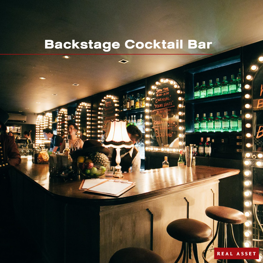 Backstage Cocktail Bar : ค็อลเทลบาร์ตกแต่งสไตล์โรงละครตะวันตก ทำให้เรารู้สึกเหมือนเข้ามาดื่มภายในห้องแต่งตัวของนักแสดงที่รอขึ้นไปโลดแล่นบนเวที ส่วนเครื่องดื่มก็ถูกคัดสรรโดยบาร์เทนเดอร์ชั้นนำ รับรองว่าคุณต้องติดใจแน่นอน รวมถึงเมนูค็อกเทลที่ใครมาก็ต้องลอง คือ Gin’s Perial และ 55th Avenue หรือหากใครอยากลองทำเมนูดริงค์ของตนเอง ทางร้านก็พร้อม Customize ให้