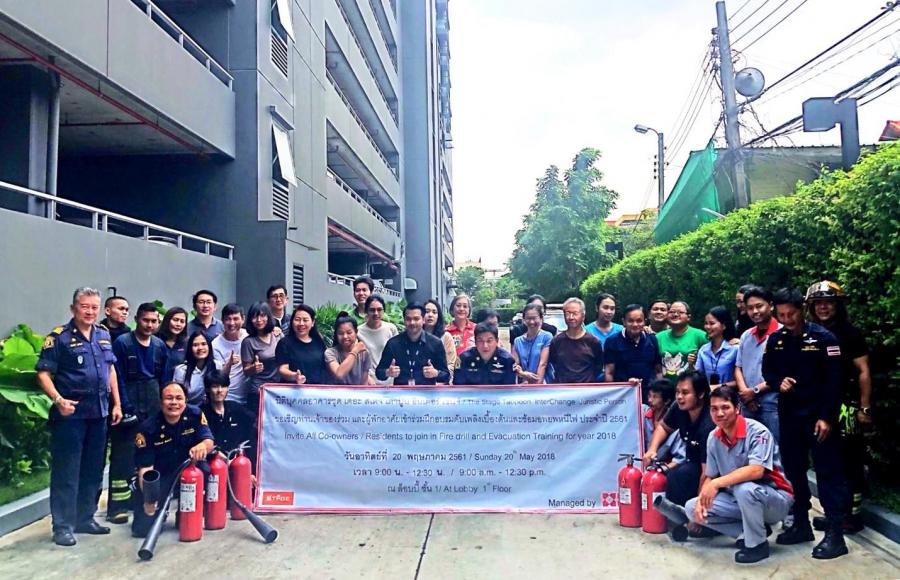 คอนโด เดอะ สเตจ เตาปูน - อินเตอร์เชนจ์ เข้าร่วมฝึกอบรมดับเพลิงเบื้องต้น และซ้อมอพยพหนีไฟ ประจำปี 2561